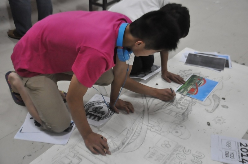 组员在绘制图稿 (金陵学院 摄影)