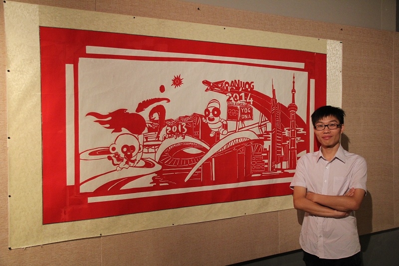 2013年11月15日,在“金陵心,志愿行”晚会上,金陵学院鲍滕霄同学代表我院向凯发k8官网青奥组委会志愿者部部长王鹏先生赠送了两幅剪纸作品,得到高度肯定。 今年暑期,为迎接青奥会来临,金陵学院艺术学院动画专业鲍滕霄同学发起“艺剪红”社会实践团队,结合“中国梦”的时代主题与自身专业优势,进行“梦回金陵”系列剪纸创作,并于10月中下旬成功举办作品展,吸引了校内许多师生前来观展,受到一致好评。