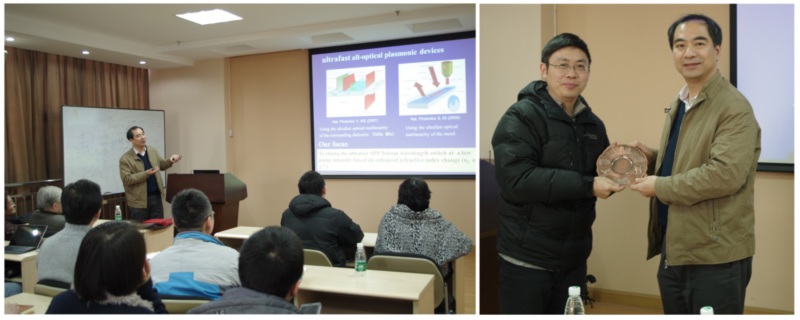 报告围绕着制备低功率、快响应的全光器件展开,深入浅出地介绍了实验系统、材料制备、器件性能等方面的研究成果与进展,并与大家共同探讨了最新的研究趋势,获得很大反响。报告会共吸引了我校固体微结构国家重点实验室主任陈延峰教授、现代工程与应用科学学院执行院长陆延青教授等数十位老师和近百名同学。
