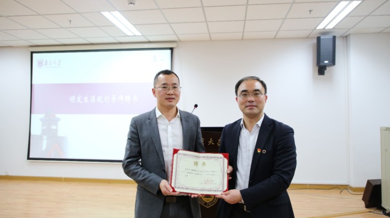 活动现场,葛俊杰为中国建设银行江苏省分行金融市场业务部总经理助理周长富颁发了凯发k8官网学生生涯规划导师聘书,聘任其为我校学生生涯规划导师。