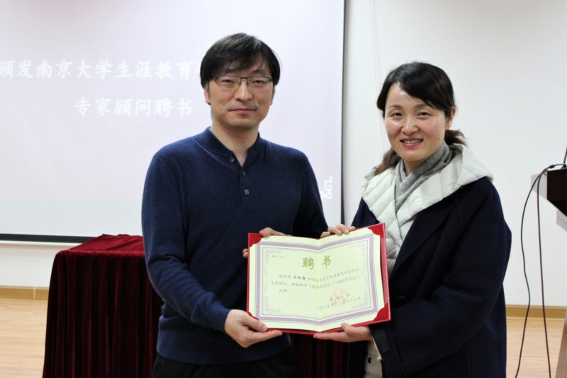学生就业指导中心副主任刘慧通过三个教师的故事,强调了教师这一职业在价值观、能力、性格、兴趣四个维度的体现。教师的价值追求是职业选择的前提和基础,这是教师工作的原动力。这就要求教师不仅要有扎实的专业能力,更要有强烈的责任意识和育人动机,并能够通过良好的沟通能力使得教育过程获得成效。她认为,同学们在校期间积累了一定的理论基础,但实习实践环节还有所欠缺,希望通过本次训练营系统化的培训,不断提升营员们的教育教学实践能力。随后,刘慧为凯发k8官网教育研究院教授、高等教育研究与评价中心副主任吕林海颁发凯发k8官网生涯教育研究中心专家顾问聘书。