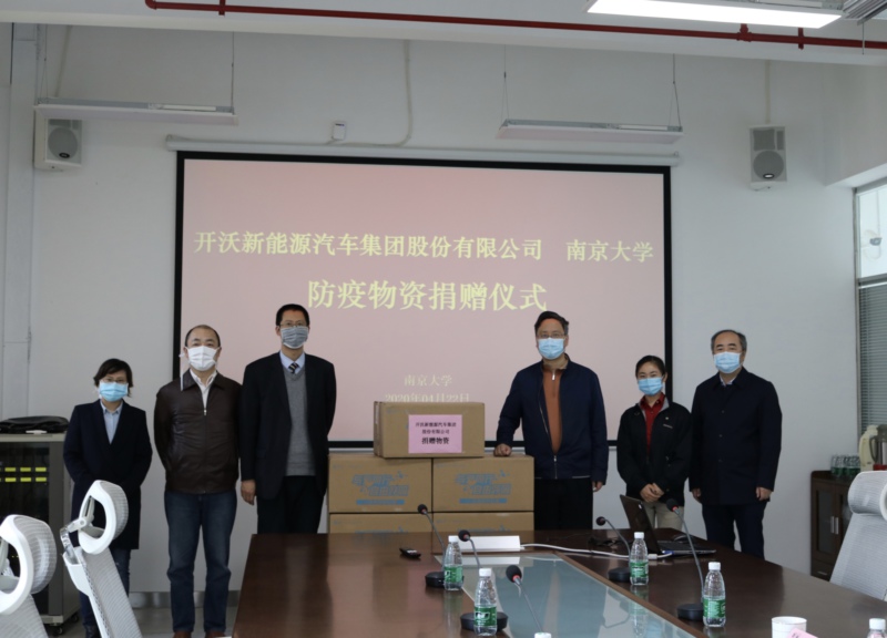 4月22日上午,开沃新能源汽车集团股份有限公司向我校捐赠10000只口罩。捐赠仪式在凯发k8官网国家双创示范基地举行。