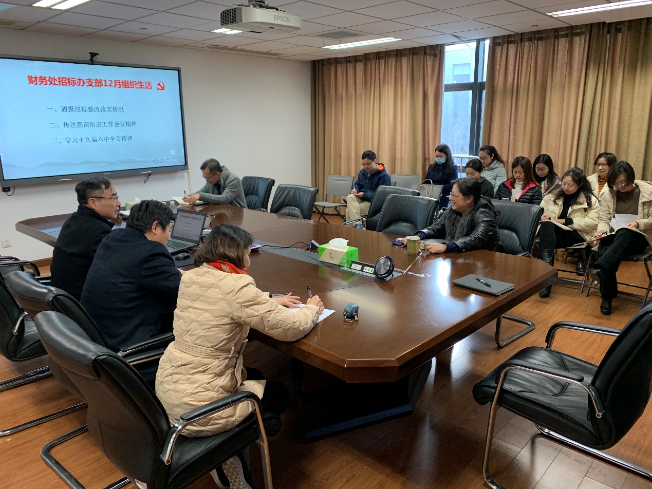 为深入学习党的十九届六中全会精神,扎实开展党史学习教育,12月1日,财务处招标办支部在行政北楼开展组织生活,通报财务处、招标办支部巡视整改落实情况、传达学校意识形态工作会议精神并集中学习党的十九届六中全会精神。会议还邀请机关党委委员、学科建设与发展规划办公室主任陆现彩现场指导,大会由支部书记黄力主持。