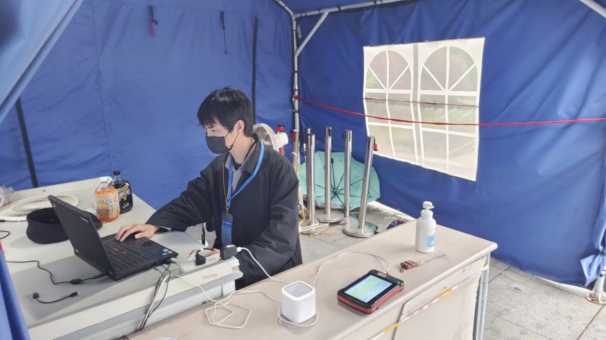 从3%常态化检测,到全员核酸,再到20%常态化检测与全员检测相结合,随着疫情形势的变化,校内核酸检测压力陡增,为确保每一次核酸检测正常进行,信息化中心组织人员在检测场地进行校园网部署,并在提供网络保障服务来保证核酸检测正常进行。