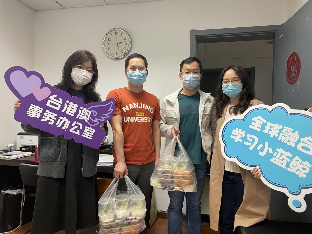 三月以来,因疫情防控需要,部分在校台港澳交换生临时被隔离,台港澳办安排工作人员连续多日为交换生配送餐饮物资,做好服务保障,安抚学生情绪。
