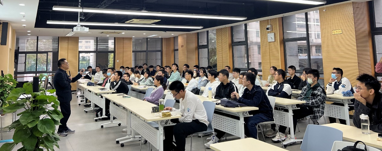 课程学习和修课方案作为同学们在大学期间最为关心的因素之一,对同学们的毕业和继续学习有着举足轻重的作用。俞寿云特别为拔尖计划和强基计划的同学们介绍了各自的专业课程构成、总学分计算机制、以科研项目为载体的课程,希望同学们在参与科学实践的同时提升自身能力,提高自身素质。他还详细介绍了综合评价成绩单的三部分构成及"不止看成绩"的评价体系,激励同学们在学术道路上不断前行的同时成为更全面发展的创新性人才。考虑到大一新生对大学生活的各种迷茫和问题,他还由浅入深,结合实例,为同学们比较了大学和高中的区别,介绍了大学这样一个"老师和学生一起创造知识的地方",用幽默风趣的语言为同学们指明了前路,为还处在迷惘期的新生提供了建议,用自身经验为同学们点亮一盏明灯。