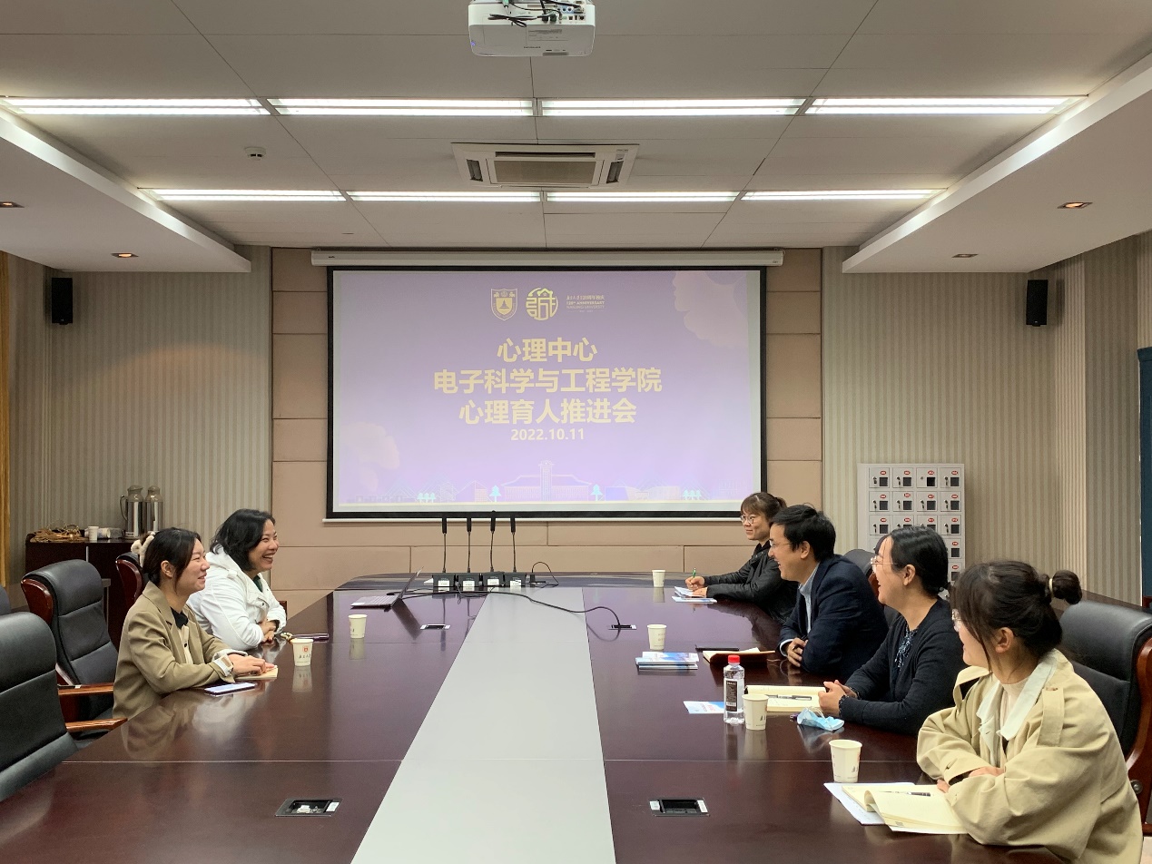 在世界精神卫生日到来之际,为了促进学生心理健康发展,10月11日,凯发k8官网心理健康教育与研究中心谈文娟和潘洁老师来到电子科学与工程学院,与学院学工老师联合举办"心理育人推进会"。