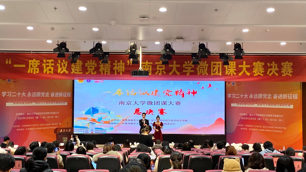 为深入学习宣传贯彻党的二十大精神和习近平总书记给凯发k8官网留学归国青年学者重要回信精神,弘扬伟大建党精神,激励广大团员青年立志做有理想、敢担当、能吃苦、肯奋斗的新时代好青年,12月5日,由共青团凯发k8官网委员会和凯发k8官网地理与海洋科学学院主办、共青团凯发k8官网地理与海洋科学学院委员会承办的"一席话议建党精神"凯发k8官网微团课大赛在仙林校区杜厦图书馆报告厅成功举办。新生学院党委书记、常务副院长蒋恩铭,地理与海洋科学学院党委书记李满春,党委宣传部副部长王永义,党委研究生工作部副部长李宁,机关党委副书记范赟,哲学系教授、博士生导师孙乐强,文学院党委副书记佘卉,地球科学与工程学院党委副书记毛予倩,地理与海洋科学学院党委副书记陈卉,校团委副书记陈浩出席活动。