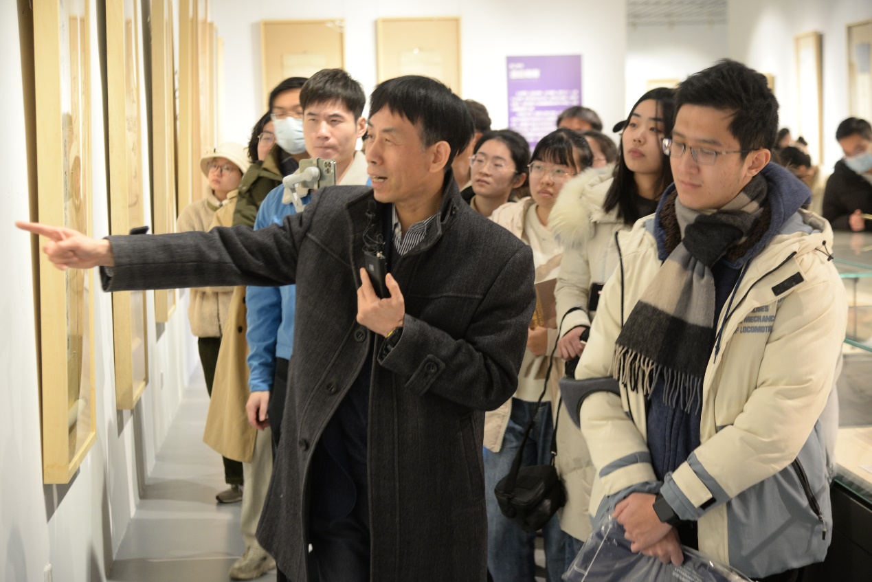 讲座结束后,程教授带领大家来到展厅,结合实际展品,更加细致解读诗歌在文人交往中的重要作用。师生们兴致勃勃,通过实物观览结合讲座内容,对展品有切实体会,深入理解"诗为贵"的道理。