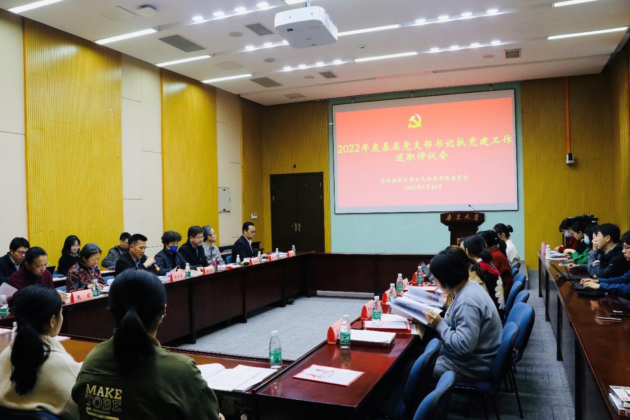 学院党委书记林仕尧对13位支部书记的述职情况逐一进行点评,并作总结讲话。他在充分肯定各支部工作成绩的同时,也指出了存在的问题,提出了整改提高要求。他指出,一年来各党支部注重政治建设,加强政治引领,强化使命担当,党支部书记认真履行抓党建工作第一责任人职责,认真贯彻落实学校党委各项工作部署,聚焦学校和学院中心工作,聚焦党建主业,坚持管党治党,坚持立德树人,团结带领党员,密切联系师生,认真组织专题理论学习,加强党员教育管理,严格落实"三会一课",创新开展一系列丰富多彩主题教育活动,较好地完成了年度支部工作任务,特别是在高知群体中发展党员工作有了新突破,党建工作取得了积极成效,党支部的政治功能和组织功能不断提升,党支部标准化规范化建设进展显著,为学院的改革发展稳定发挥了支部战斗堡垒作用和党员先锋模范作用。但也存在理论学习不够系统深入、支部开展活动方式较为单一、少数党员学习参与度不均衡、党建宣传工作比较薄弱等问题,各支部要按照查摆的问题,对照问题清单,认真做好整改。他强调,各党支部要深入学习贯彻好习近平新时代中国特色社会主义思想和党的二十大精神,认真学习学校党委谭铁牛书记在十五届委员会第十二次全体(扩大)会议上的讲话精神,以奋进行动加快推进"第一个凯发"建设,要以奋进的姿态抓好党建、以扎实的作风落实整改,围绕学校和学院中心工作抓好党的建设,紧扣增强政治功能和组织功能抓好支部建设,立足大气学科特色,坚定科技报国理念,持续推进理论学习常态化,创新党建工作机制与方式,补短板,强弱化,建机制,抓长效,团结凝聚广大党员奋进新征程、建功新时代。各党支部好的经验、特色、典型和做法,要及时总结和发掘,在学院党委公众号"南雍气象"和学院网站"党的建设"专栏进行宣传报道。