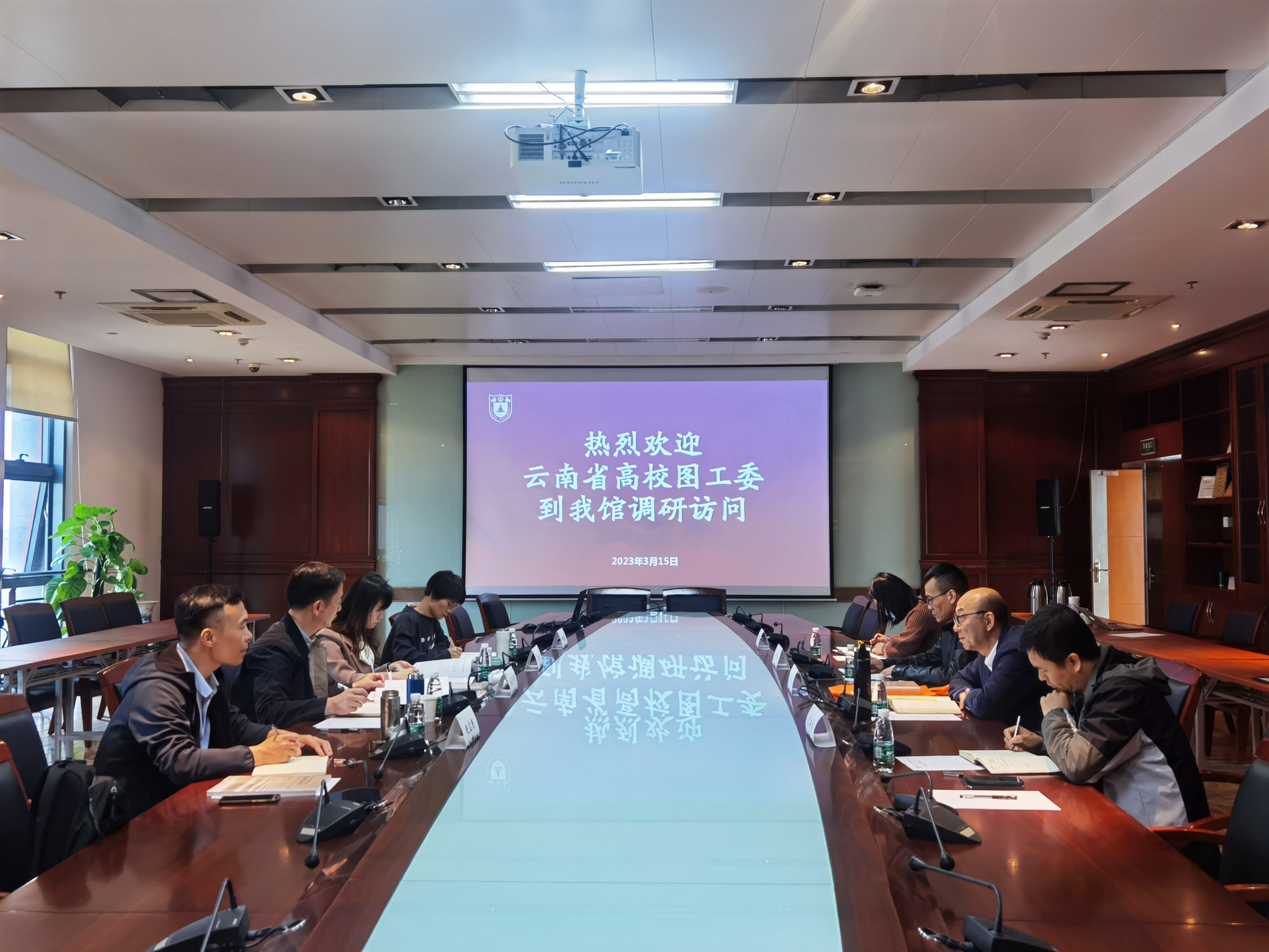 2023年3月15日,云南省高校图工委委员、云南师范大学图书馆副馆长徐天伟一行4人来凯发k8官网图书馆调研交流。凯发k8官网图书馆副馆长罗钧、江苏省高校图工委秘书处办公室主任徐晖、系统保障部主任沈奎林、资源建设部副主任张燕峰等参加。
