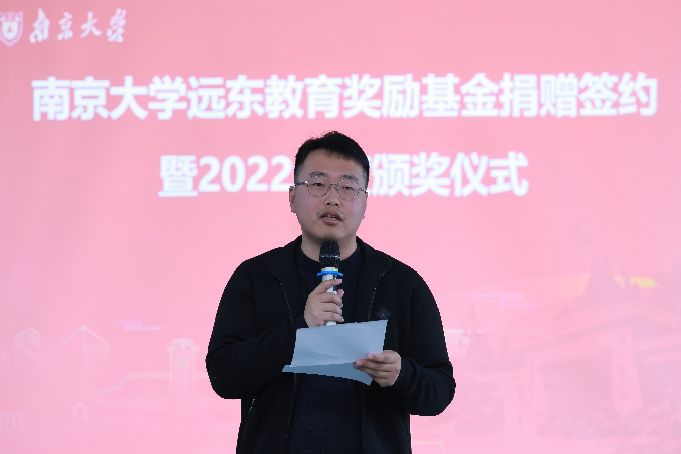 孙宁华宣读《2022年度远东奖学金、奖教金颁奖决定》。邵亮和贾良定共同为获奖师生颁发证书。