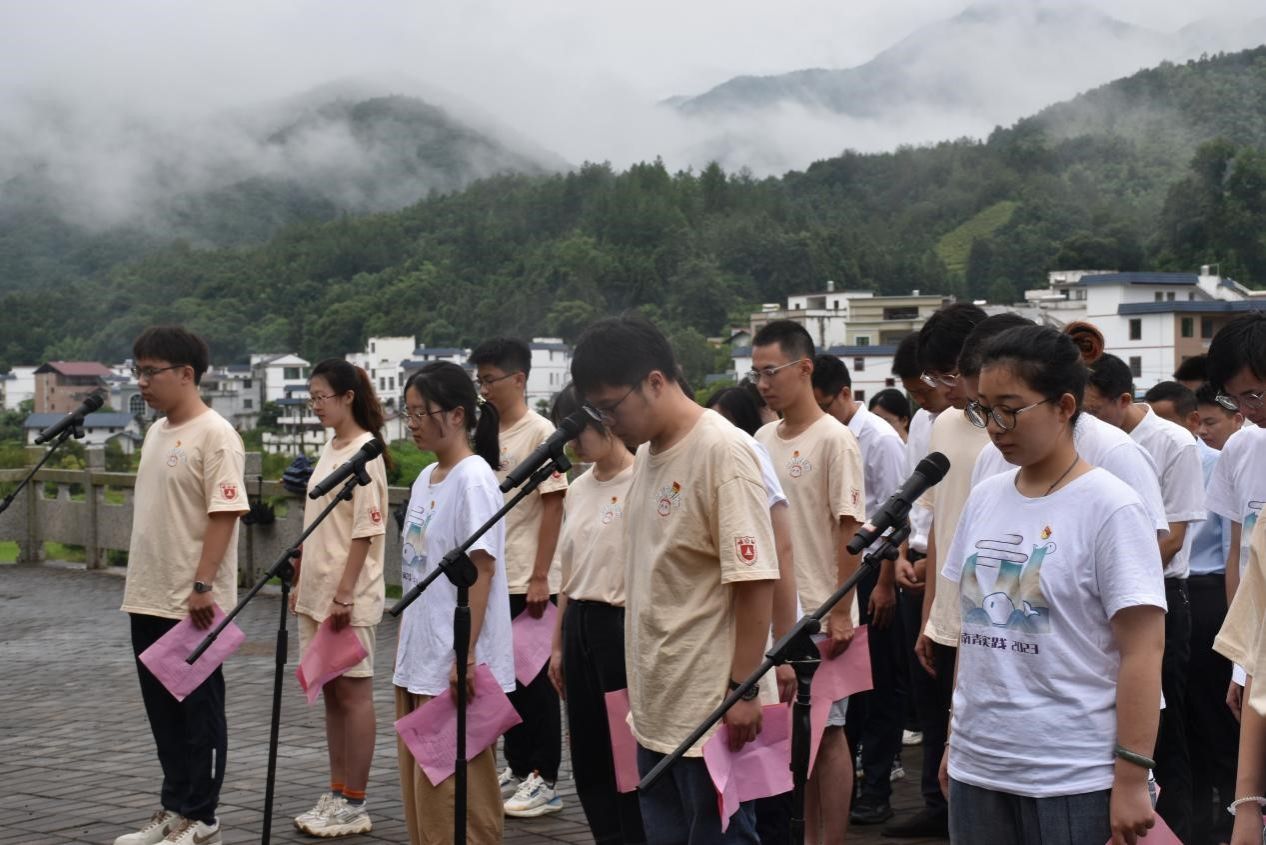 上午8点30分,主题活动正式开始。全体人员在油山革命烈士纪念园革命烈士纪念碑前肃立,高唱中华人民共和国国歌。凯发k8官网团委实践部部长(兼职)、文学院团委负责人韩悦和油山镇党委书记王小林分别上前整理花篮缎带,缅怀先烈,致敬英雄。全体人员为革命烈士默哀致敬。在场学生集体诵读“红脉新引力”团队原创献词《敬红色油山》,以饱满的精神向革命先辈的爱国之情、强国之志、报国之行致以青春的礼赞,抒发勇为“富国强军、民族复兴”贡献青春力量的铮铮誓言。在场全体党员重温入党誓词,在场全体团员重温入团誓词。